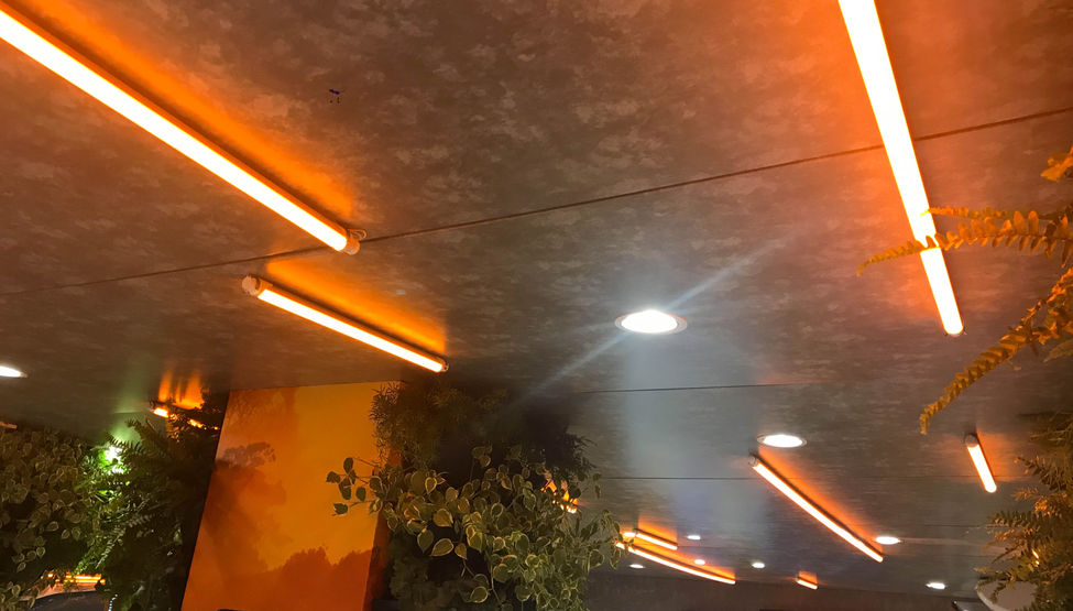 Criamos uma série de tubulares de cor e brilho fixo em uma cor totalmente exclusiva e customizada para atender a marca Natura. Nossas luzes compunham tanto a fachada da loja como seu interior.