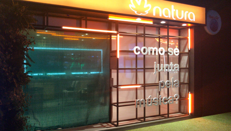 Desenvolvemos projetos de iluminação cenográfica com led digital e convencional para o estande e a loja da marca Natura, durante sua presença no maior festival de música do mundo. O desenho todo do estande foi um projeto vencedor do estúdio Xingu.